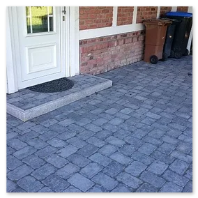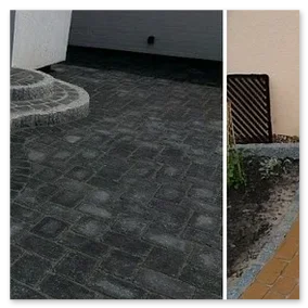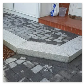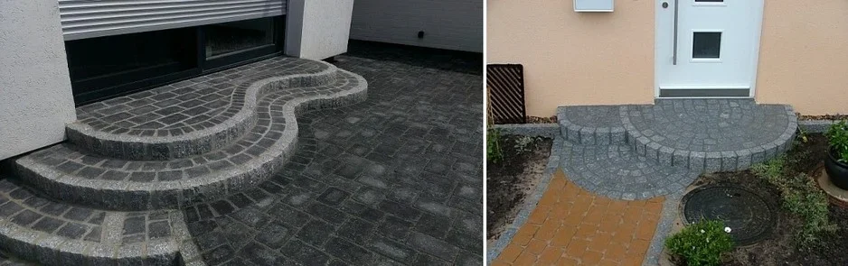 Beim unteren Beispiel wurden in der Stufenanlage dieselben Pflastersteine verwendet wie in der angrenzenden Hauptfläche.